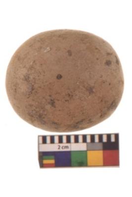 | Description / विवरण | Specimen of a spherical shaped hammer stone with battered surface. |