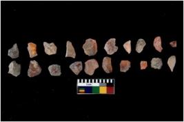 | Description / विवरण | Specimen of flakes Chips with prominent flaking marks. It made up of a short flakes with sides trimmed. |