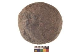 | Description / विवरण | Specimen of a spherical shaped hammer stone with battered surface. |