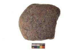 | Description / विवरण | Specimen of a roughly rounded hammer stone with battered surface. |