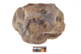 | Description / विवरण | Specimen of a irragular shaped hammer stone with battered surface. |