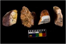 | Description / विवरण | There are n 4 objects; three are quartz one is chert,chert core is very small in size and having groove mark. |