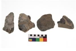 | Description / विवरण | There are n 4 utilized flakes. There are multi directional irregular scar pattern on both dorsal and ventral face of the flakes. One is flat base and two are tapering and one is pointed at one end. |