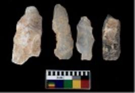 | Description / विवरण | There are n 4 utilized flake cores. Out of them three are made up of Chalcedony and one is made up of Chert. There are multi directional irregular scar pattern on them. All of them are tapering at one end. |
