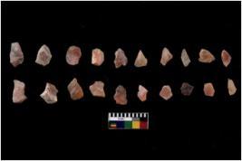 | Description / विवरण | Specimen of flakes Chips with prominent flaking marks. It made up of a short flakes with sides trimmed. |
