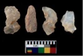 | Description / विवरण | There are n 4 utilized flake cores. Out of them three are made up of Chalcedony and one is made up of Chert. There are multi directional irregular scar pattern on them. All of them are tapering at one end. |