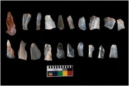| Description / विवरण | There are n 20 blades. They show variation in size and shape. all are blunted back blades, a few are pen pointed edges, some are tapered edges, and truncated blades, some are sharp edges, one has arc edge, who is square, who is rounded edges. |