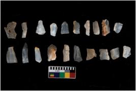 | Description / विवरण | There are n 20 blades. They show variation in size and shape. some of them are blunted back blades, one has arc edges, a few are tapered edges, points, trapezes, and truncated blades. |