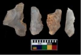 | Description / विवरण | There are n 4 utilized flake cores. There are multi directional irregular scar pattern on them. Three are tapering at one end and one has sharp edge. |