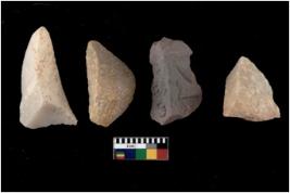 | Description / विवरण | There are n-04 objects; among them three have chalcedony, and one has chert, some of them have sharp edges, and few have tapering edges. |