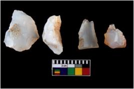 | Description / विवरण | There are n 4 utilized flake cores. There are multidirectional irregular scar pattern on both dorsal and ventral face of the flake cores. One has sharp edges and three have blunted edges. |