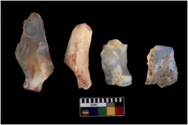 | Description / विवरण | There are n 4 utilized flake cores. There are multidirectional irregular scar pattern on both dorsal and ventral face of the flake cores. One has sharp edges and three have blunted edges. |