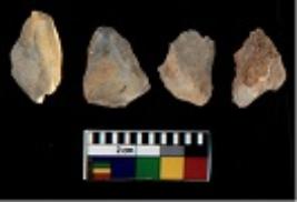| Description / विवरण | There are n 4 utilized flake cores. There are multi directional irregular scar pattern on them. One is tapering at one end and three have blunted edges. |