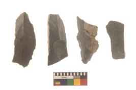 | Description / विवरण | There are n 4 flakes tool; there are large flakes with sides trimmed, Marks of secondary flaking are present on the both the faces. The dorsal is relatively flat. |