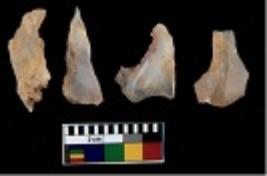 | Description / विवरण | There are n 4 utilized flake cores. There are multi directional irregular scar pattern on them. Three are tapering at one end and one has sharp edge. |