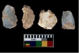 | Description / विवरण | There are n 4 utilized flake cores. There are multi directional irregular scar pattern on them. Two are tapering at one end and two have blunted edges. |