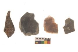 | Description / विवरण | There are n 4 flakes tool; there are flakes tool with prominent flaking marks. It made up of a large flakes with sides trimmed. |