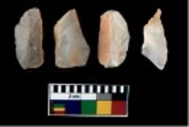 | Description / विवरण | There are n 4 utilized flake cores. There are multi directional irregular scar pattern on them. Three are tapering at one end and one has sharp edge. |