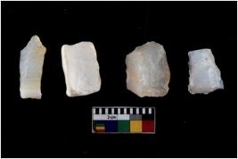 | Description / विवरण | There are n 4 utilized flake cores. There are multidirectional irregular scar pattern on both dorsal and ventral face of the flake cores. One has sharp edges and three have blunted edges. |
