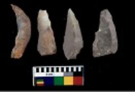 | Description / विवरण | There are n 4 utilized flake cores. Out of them three are made up of Chalcedony and one is made up of Chert. There are multi directional irregular scar pattern on them. Three are tapering at one end and one has sharp edge. |