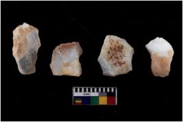 | Description / विवरण | Specimen of flake tools with prominent flaking marks. They are made up of a short flakes with sides trimmed. |