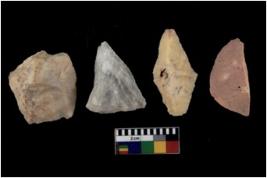 | Description / विवरण | There are n-04 objects; among them three have chalcedony, and one has chert, some of them have tapering edges, and few have rounded edges. |