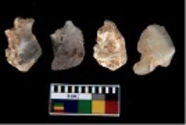 | Description / विवरण | There are n 4 utilized flake cores. There are multi directional irregular scar pattern on them. One is tapering at one end and three have blunted edges. |