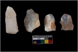| Description / विवरण | Specimen of flake tools with prominent flaking marks. They are made up of a short flakes with sides trimmed. |