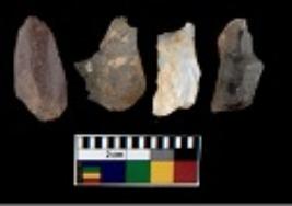 | Description / विवरण | There are n 4 utilized flake cores. Out of them three are made up of Chalcedony and one is made up of Chert. There are multi directional irregular scar pattern on them. All of them are tapering at one end. |
