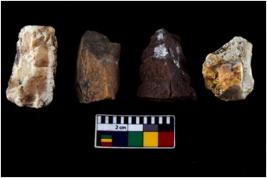 | Description / विवरण | There are n 04 objects; all of them have flat base, blade removing marks are visible, one is in triangle shape, two are tapering at one end. |