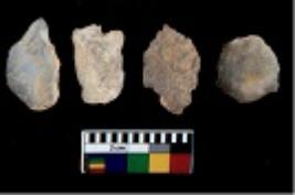 | Description / विवरण | There are n 4 utilized flake cores. There are multi directional irregular scar pattern on them. Three are tapering at one end and one has blunted edge. |
