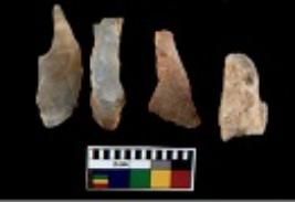 | Description / विवरण | There are n 4 utilized flake cores. There are multi directional irregular scar pattern on them. Three are tapering at one end and one has sharp edge. |