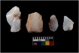 | Description / विवरण | There are n 4 utilized flake cores. There are multidirectional irregular scar pattern on both dorsal and ventral face of the flake cores. One has sharp edges and three have blunted edges. |
