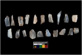 | Description / विवरण | There are n 20 blades. They show variation in size and shape. a few are pen pointed, all are blunted back blades, some are tapered edges, and who is rounded, who is square, triangle, and some are sharp edges, at one end. |
