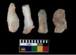 | Description / विवरण | There are n 4 utilized flake cores. There are multi directional irregular scar pattern on them. All of them are tapering at one end. |
