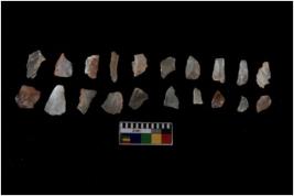 | Description / विवरण | Specimen of flakes tool with prominent flaking marks. It made up of a short flakes with sides trimmed. |