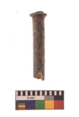 | Description / विवरण | Specimen of a polished bone point made on long bone, it has pointed top, It is circular cross section in shape with flat and thick body. |