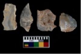 | Description / विवरण | There are n 4 utilized flake cores. There are multi directional irregular scar pattern on them. Two are tapering at one end and two have blunted edges. |