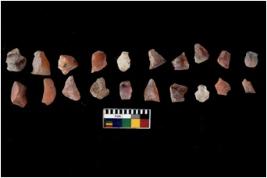 | Description / विवरण | Specimen of flakes Chips with prominent flaking marks. It made up of a short flakes with sides trimmed. |