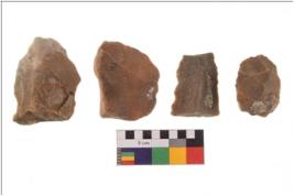 | Description / विवरण | There are n 4 flakes tool; there are large flakes with sides trimmed, Marks of secondary flaking are present on the both the faces. The dorsal is relatively flat. One is pointed functional top |