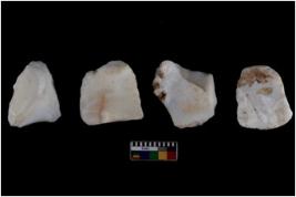 | Description / विवरण | There are n 4 utilized flake cores. There are multidirectional irregular scar pattern on both dorsal and ventral face of the flake cores. One has sharp edges and three have blunted edges. |