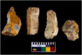 | Description / विवरण | There are n 04 objects; they show multi-directional irregular scar pattern. Some are tapering on one end. All are having sharp edges. |