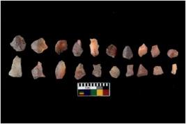 | Description / विवरण | Specimen of flakes Chips with prominent flaking marks. It made up of a short flakes with sides trimmed. |