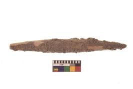 | Description / विवरण | Specimen of a polished bone point made on long bone, it has shape pointed both side. |