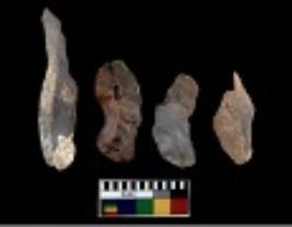 | Description / विवरण | There are n 4 utilized flake cores. Out of them three are made up of Chalcedony and one is made up of Chert. There are multi directional irregular scar pattern on them. Three are tapering at one end and one has sharp edge. |