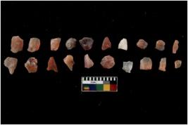 | Description / विवरण | Specimen of flakes Chips with prominent flaking marks. It made up of a short flakes with sides trimmed. |