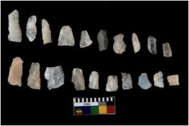 | Description / विवरण | There are n 20 flakes tool; there are multidirectional irregular scar pattern on them; made of short flakes and all four have tapering edges. |