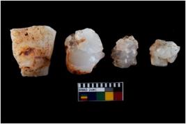 | Description / विवरण | There are n 4 utilized flake cores. There are multidirectional irregular scar pattern on both dorsal and ventral face of the flake cores. One has sharp edges and three have blunted edges. |