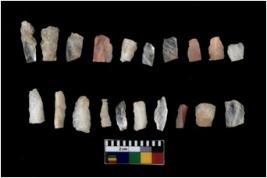 | Description / विवरण | Specimen of flakes tool with prominent flaking marks. It made up of a short flakes with sides trimmed |
