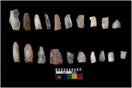 | Description / विवरण | There are n 20 flakes tool; there are multidirectional irregular scar pattern on them, made of short flakes and few have tapering edges. |
